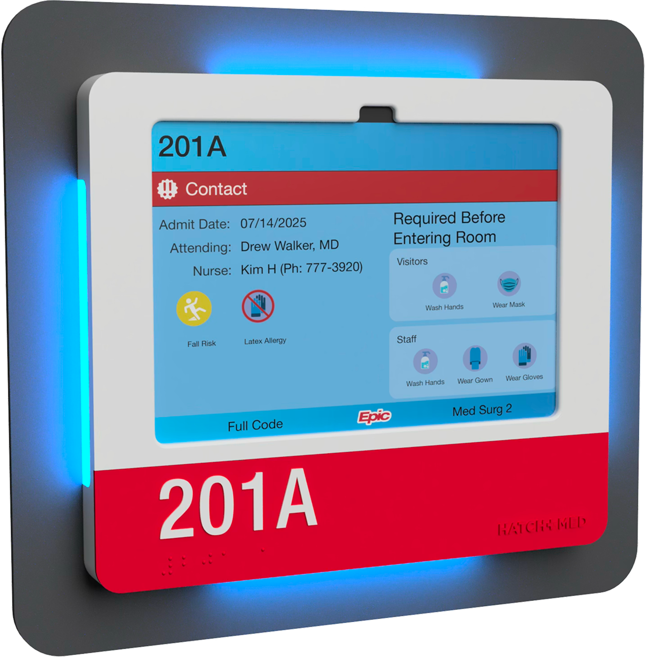 Upgrade existing signage with iPads – HallMonitor brings contextual illumination and automatic EMR updates in a customizable enclosure.