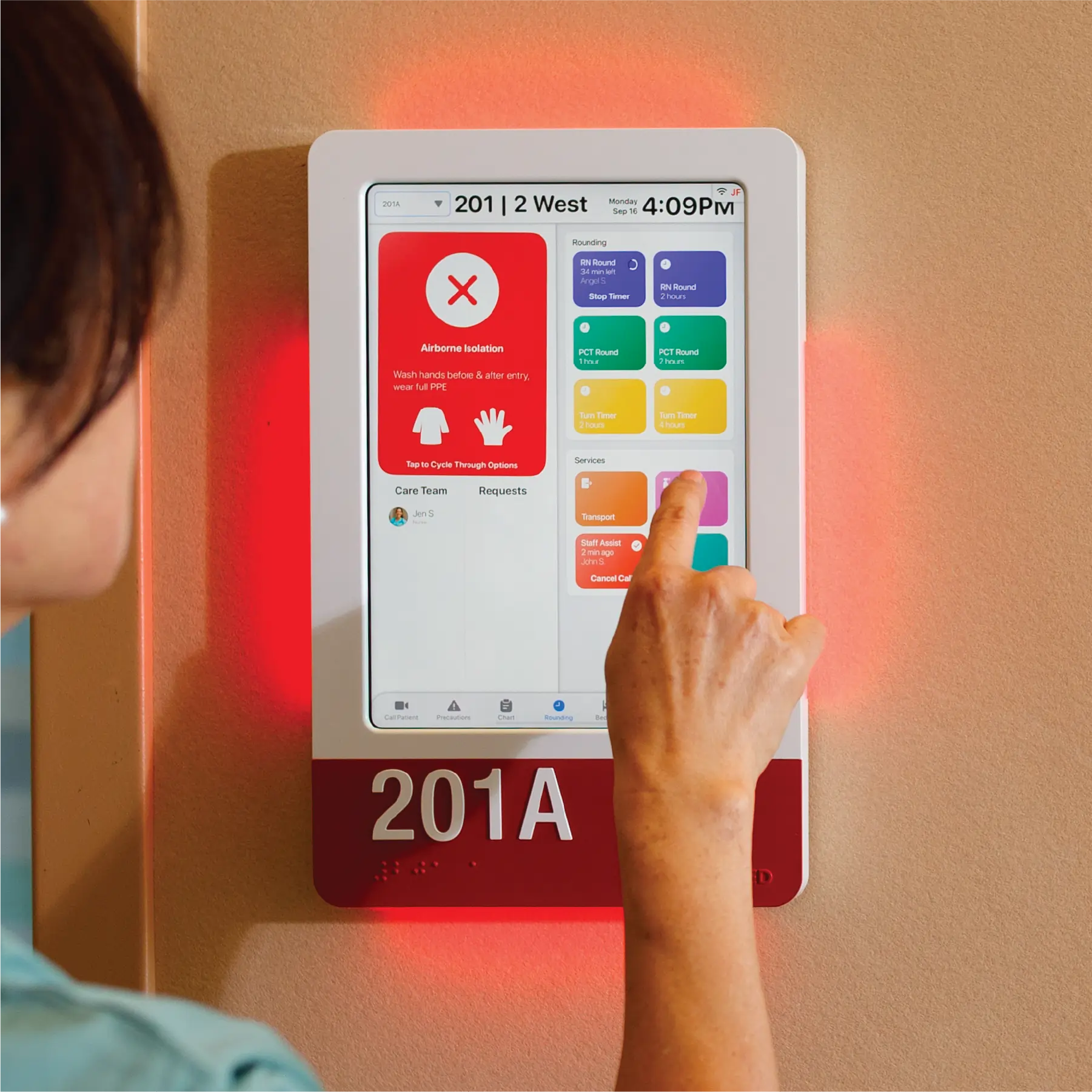 - LEDs that do more — signal fall risk, isolation, or in-room presence to prevent accidental entry
