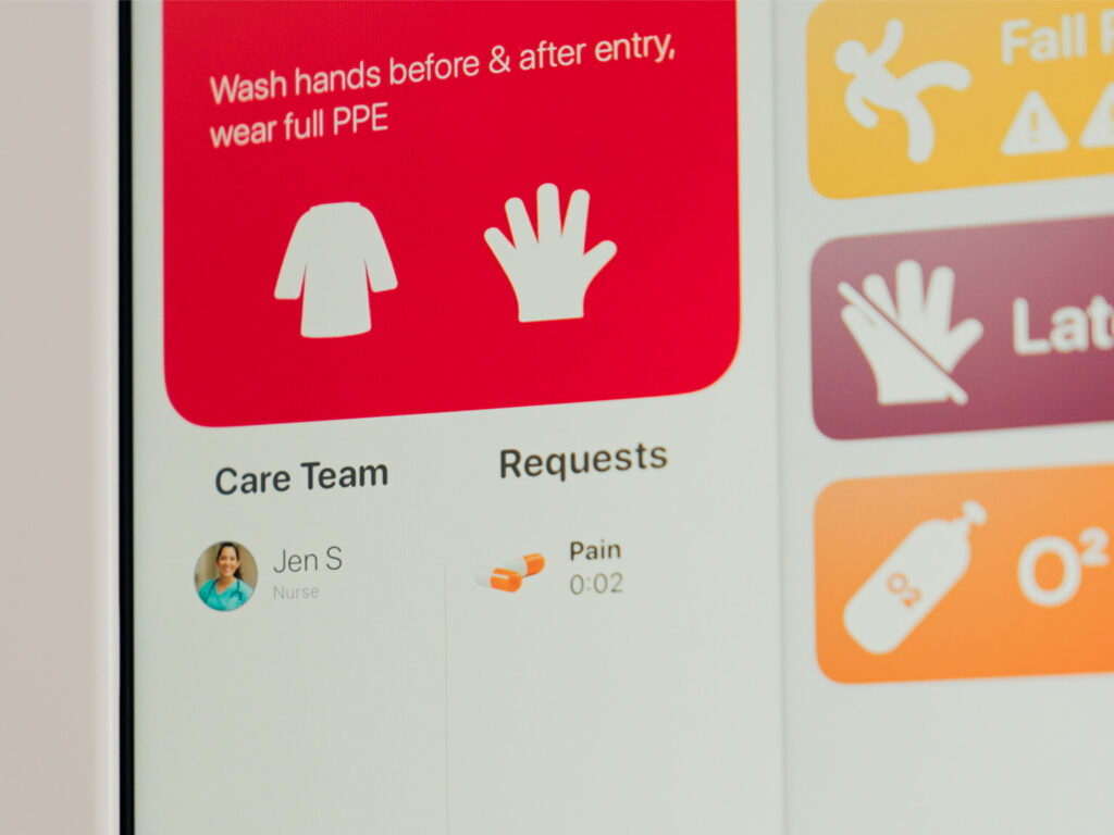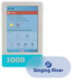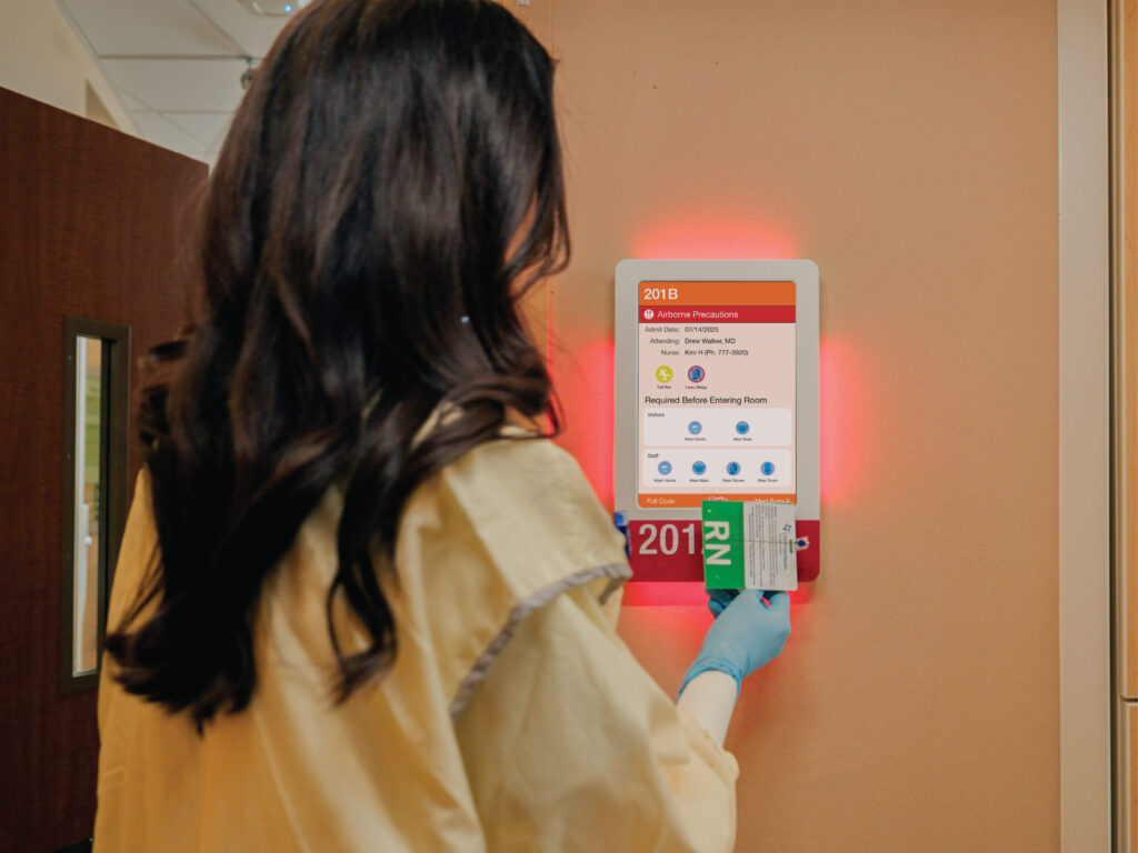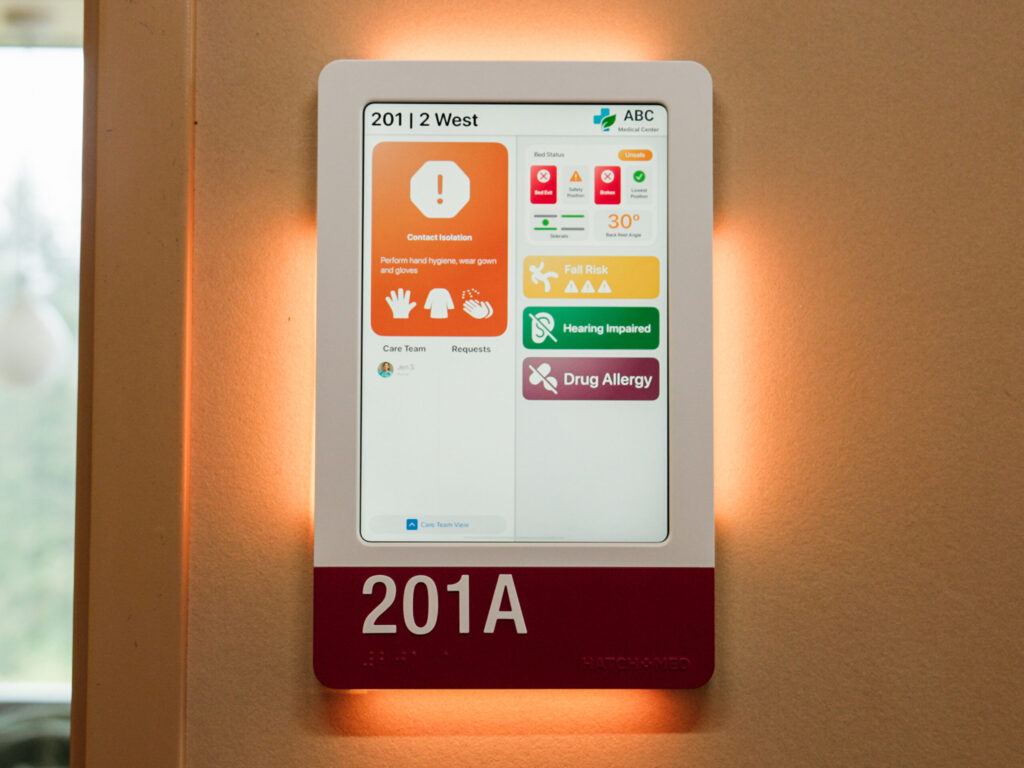 Integrates with Hill-Rom, Stryker, Linet, and more to display real-time bed data and patient safety status right outside the room. Your digital door sign becomes part of the safety ecosystem.