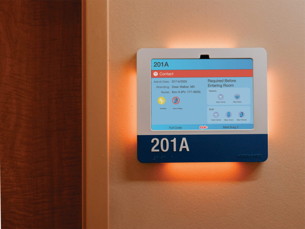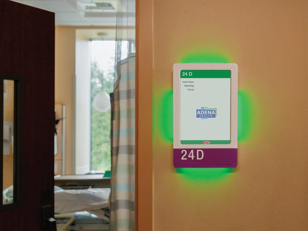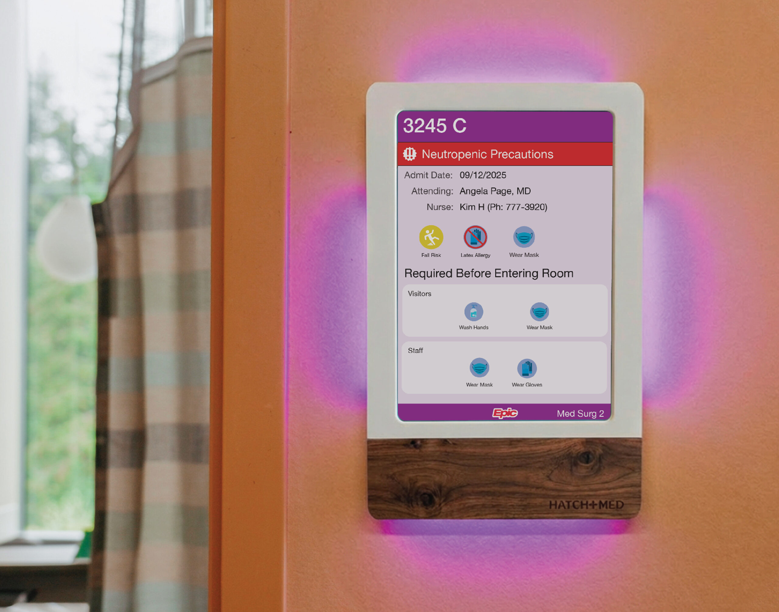 HallMonitor’s LED lighting responds automatically to Epic CER rules. When a patient status changes, the door indicator updates in real time – visible even from down the hallway.